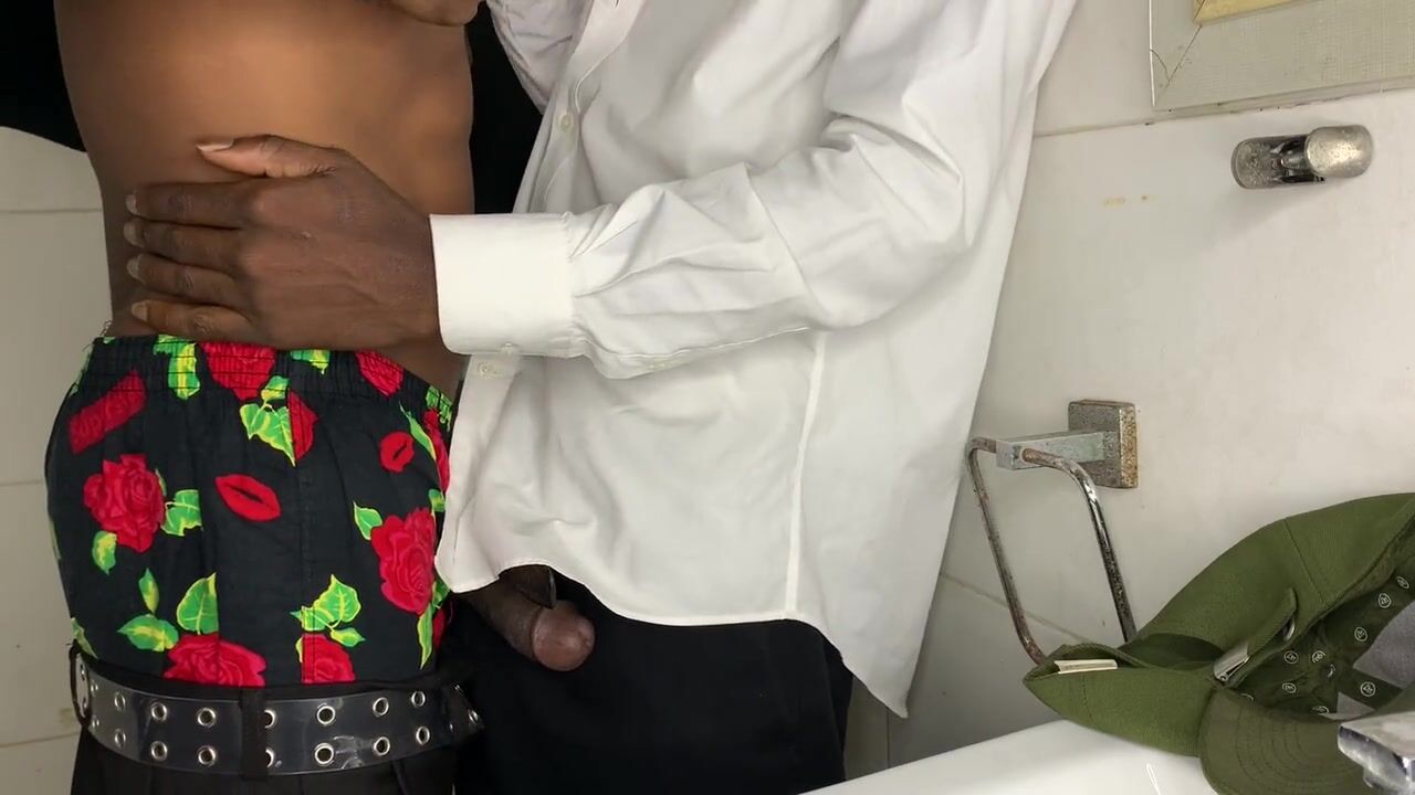 Horny Africans bathroom fucks while on duty