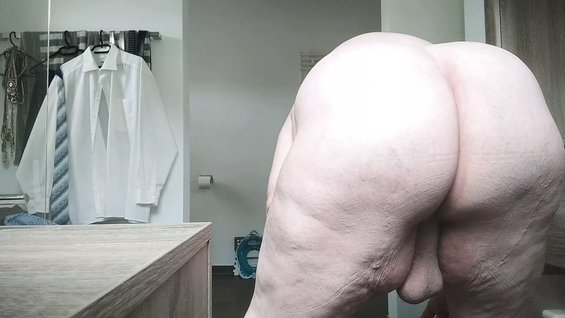 Beating my balls with the belt and shoe spoon