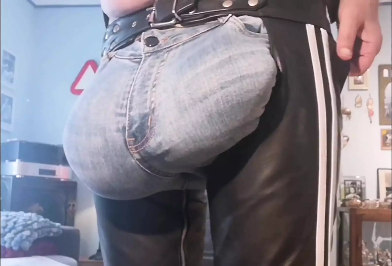 Jeans Bulge with Leather Chaps