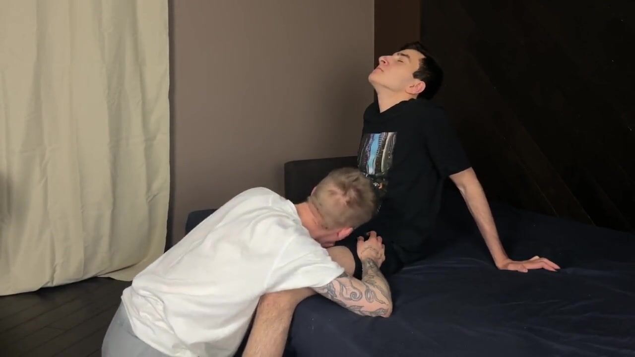 While Sharing A Blanket Horny Twink Joey Mills Rubs His Ass Against Troye Dean's H...