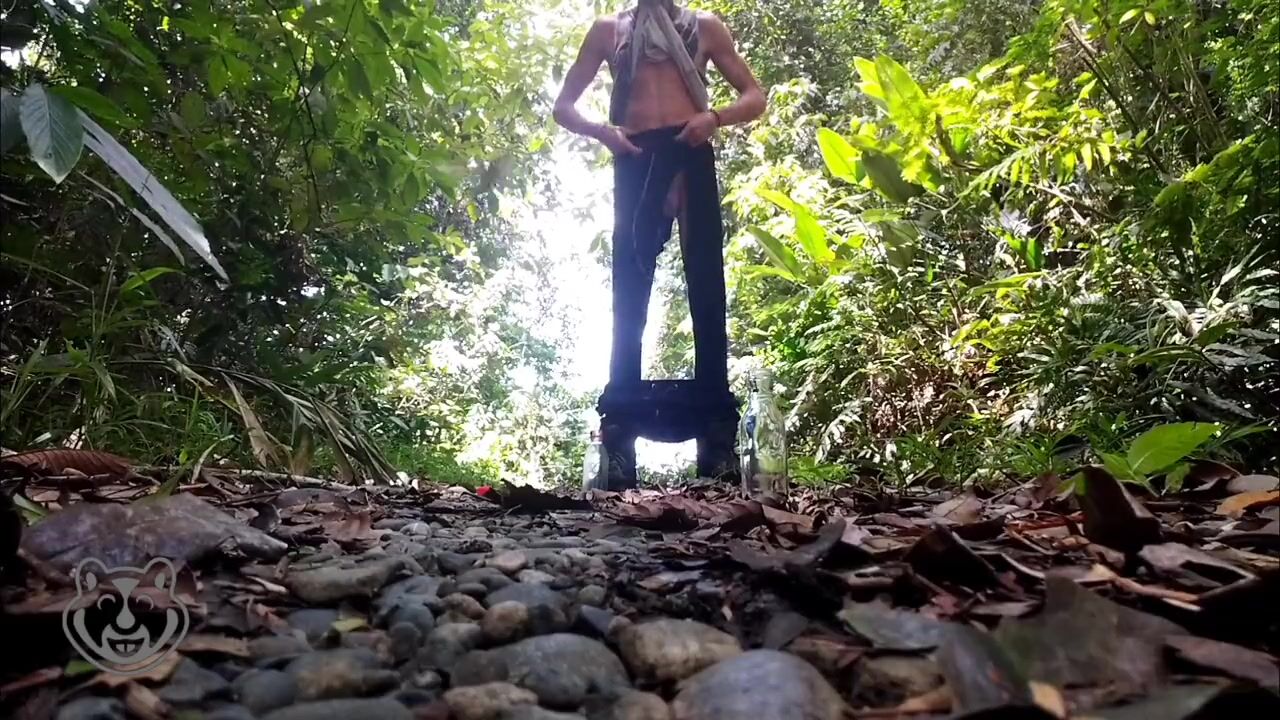 Skinny sexy guy walks jerking his dick to an orgasm that this guy enjoys in public