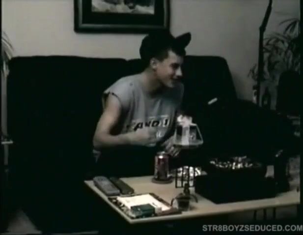 Straight boy Boston gets naked on the bed and starts stroking his 7.5 inch dick. Vinnie kneels between his legs and starts sucking it deep. Boston hasn't gotten off in a week, so it's not long before he spills a load of pre-cum. Then, after Vinnie works it a little harder, Boston gives up the real thing, exploding a big cum load on his lips.