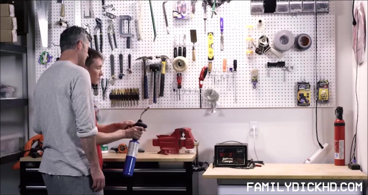 Curious young twink step step son was caught playing with his stepdads tools in the garage and step step dad wanted to tell his mother but step son agreed to get fucked.