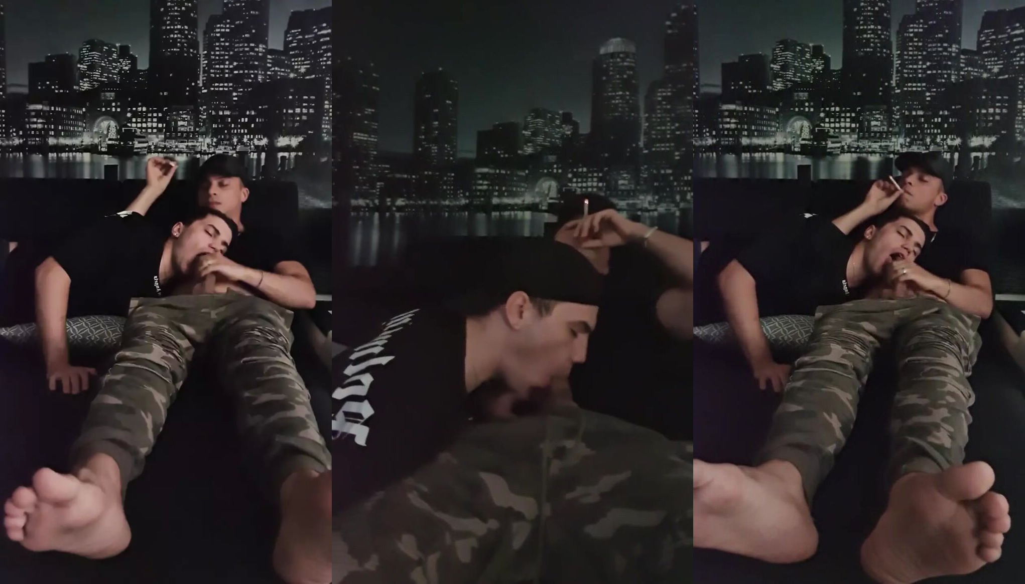 I was smoking and wanking when my boy wondered why I was so quiet. So he came to the living room to check the situation and he caught me while I was smoking and wanking. It was amazing cause he helped me out with his hot mouth ;)