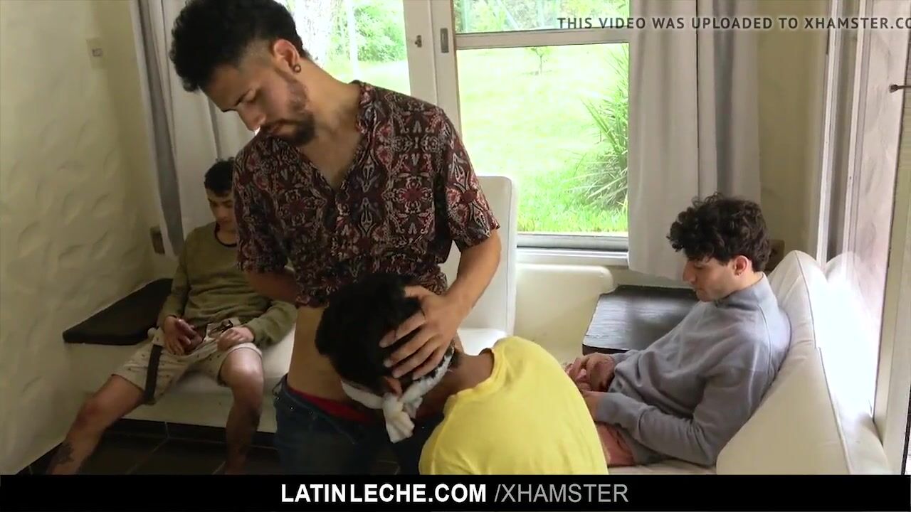 Our trickster films a cute stud as he blindfolds a boy for a sexy game. Two more hung guys show up to take part in the orgy, pounding the boy’s tight hole before showering him in hot leche!