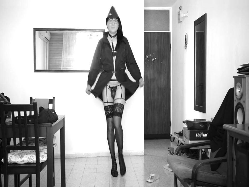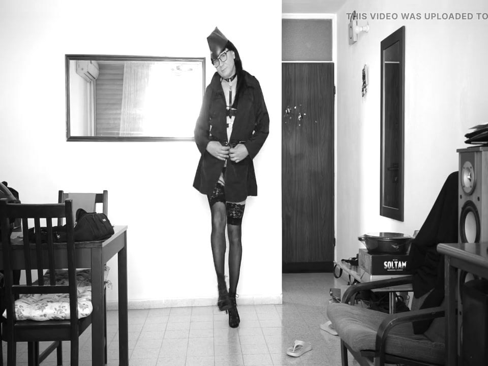 The stewardess is ready for 1 flight in a sexy outfit.
