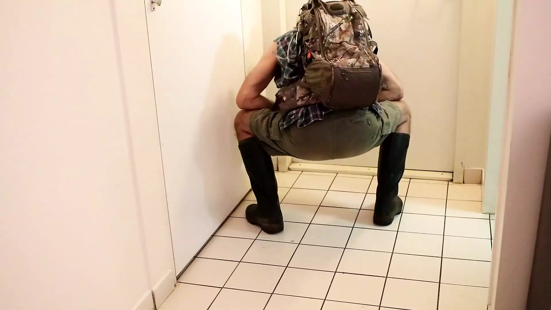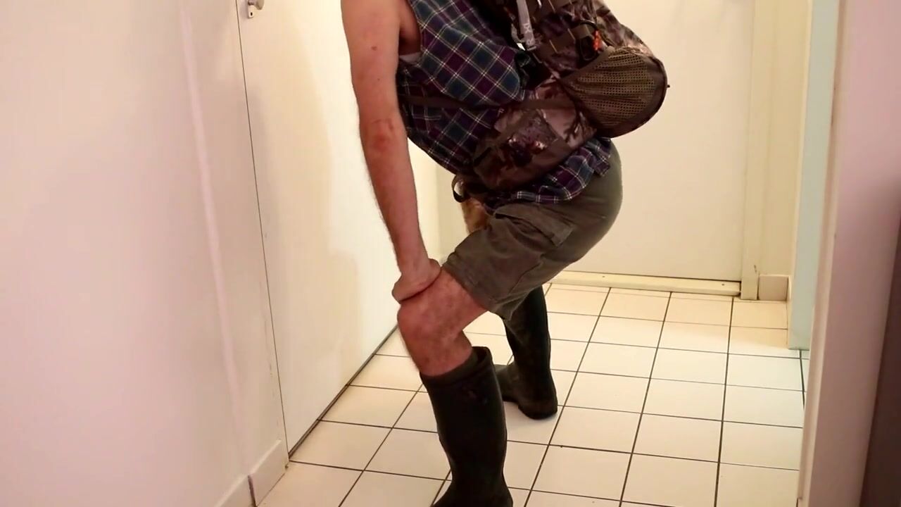 After a hike in my rubber Aigle boots in the sun I was horny as hell. I needed to jerk off and to play with my nips and balls. After he shot a huge load of cum over my rubber boots.