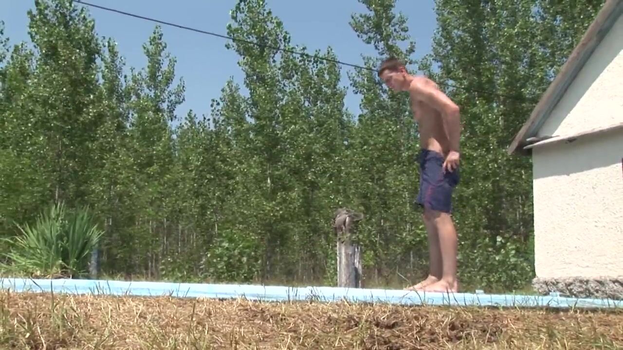 Hot sex in the pool with a blond boy and his friend