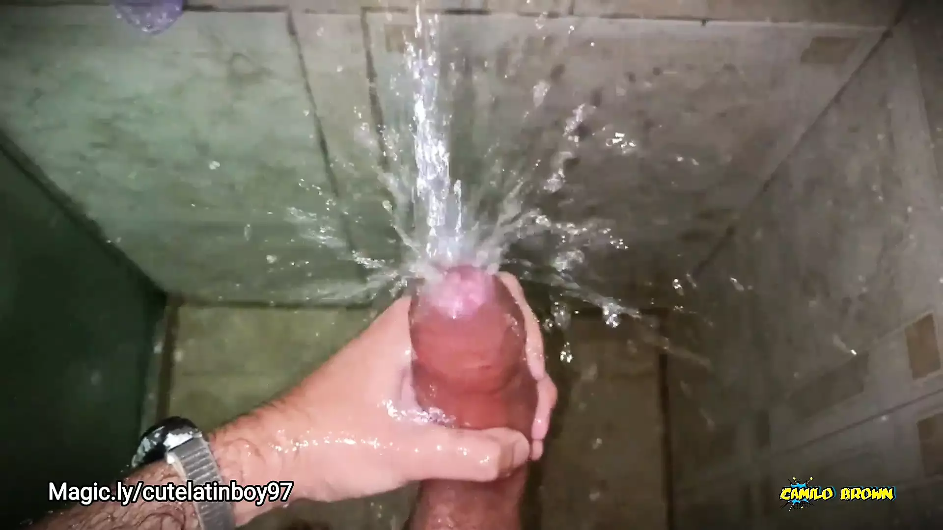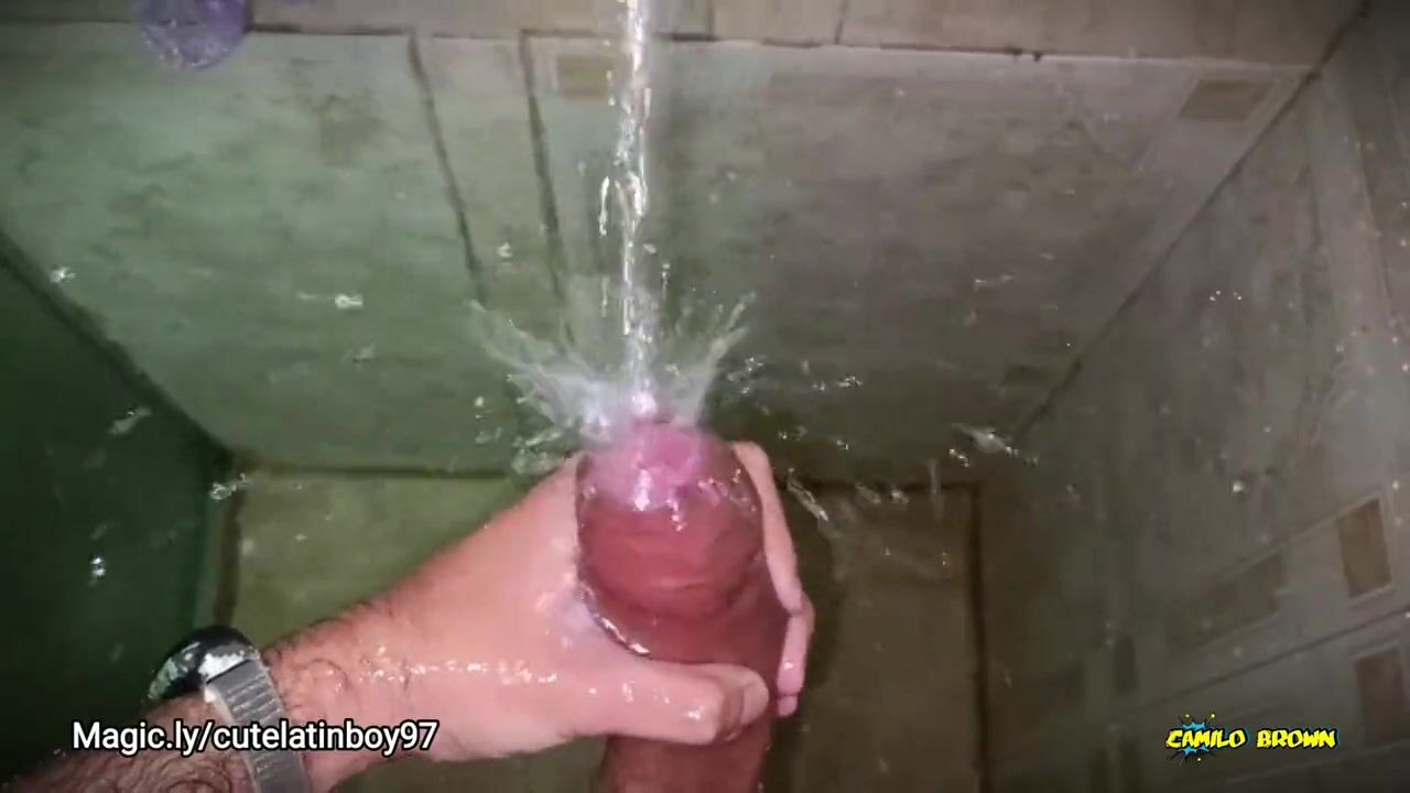 No hands water masturbation. Letting the stream of water fall on my big uncut latino cock until it makes me cum hands fr