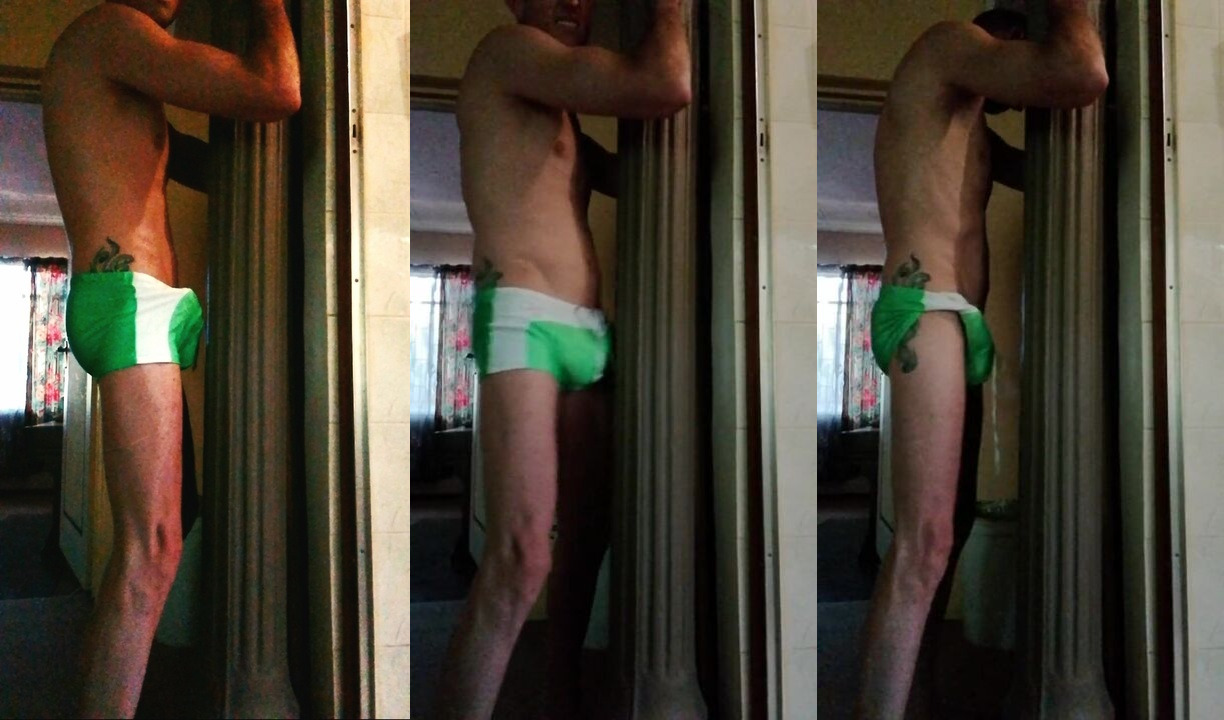 Watch my already rock hard dick get even harder as I repeatedly slam my crotch into a concrete pillar