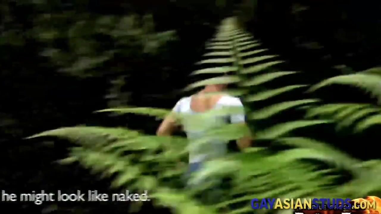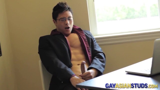 Muscly gay asian stud stroking
